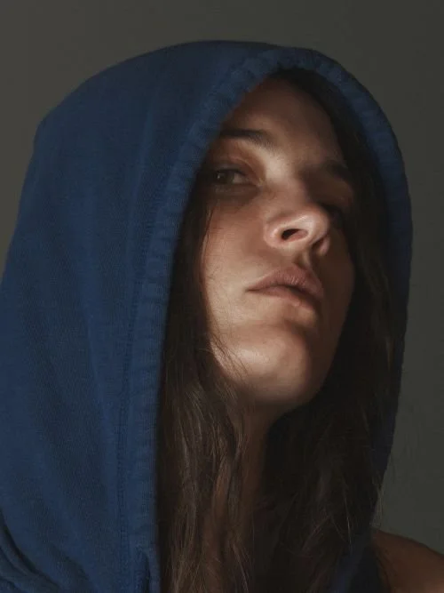 If Sophia has caught the attention of casting directors, it’s as much about that vibe as her literal styling, and it derives from her close creative partnership with her longstanding visual collaborators. In the video for I’ll Take It, she rocks up to a 10th-floor gym after hours, wired headphones in and purple adidas hoodie zipped, mouthing her lyrics as she lifts weights and spins about. In the sunrise opening of the rooftop-set Everyone Falls Asleep In Their Own Time, she lights a cig and not-quite-winks at the camera. By the end, she’s veered into parkour, the city skyline behind her, the moves and views a callback to her and Aaron’s youthful passion for skating. “With street skating, you’re always looking. You view things with a creative mind. Spots where you could do a trick. [Our] favourite thing was just to smoke weed and edit a skating video. It’s so fun.” A few months back, Sophia’s skating connection and fashion credentials synced up rather nicely when she modelled for Palace’s holiday lookbook.