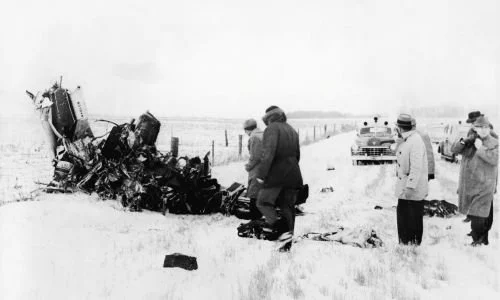 IN THIS PHOTO: ‘The day the music died’ … the 1959 plane crash that killed Buddy Holly is thought to be one of American Pie’s references – but Don McLean hints it could be about his father’s death/PHOTO CREDIT: Hulton Archive/Getty Images (via The Guardian)